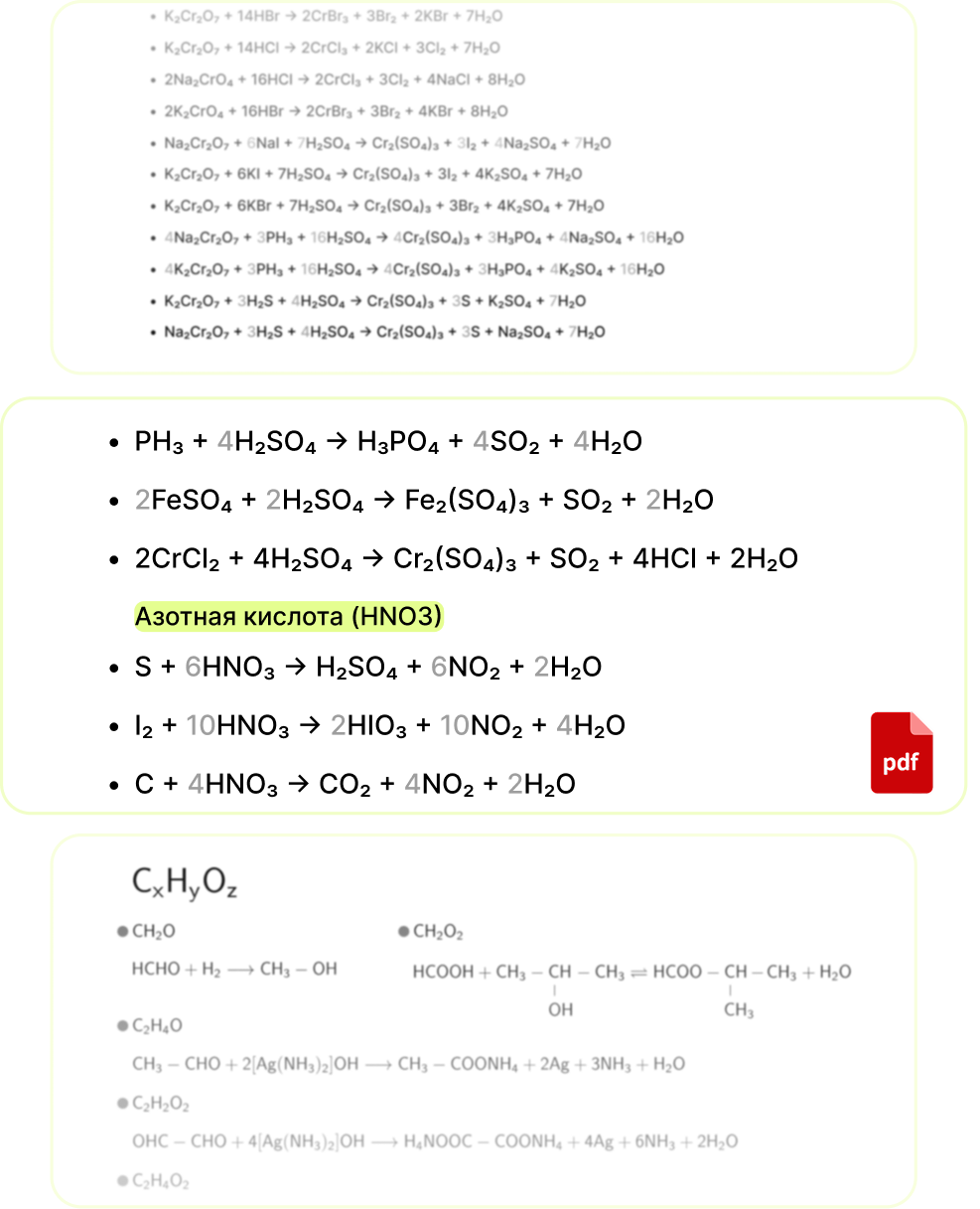 В документе собраны только те реакции, которые реально встречаются в экзамене.
